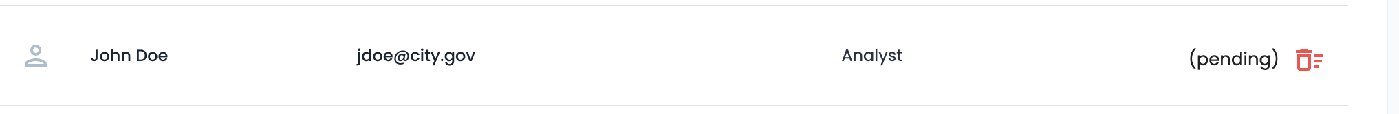 Users that have not accepted the invitation will show a "(Pending)" status.