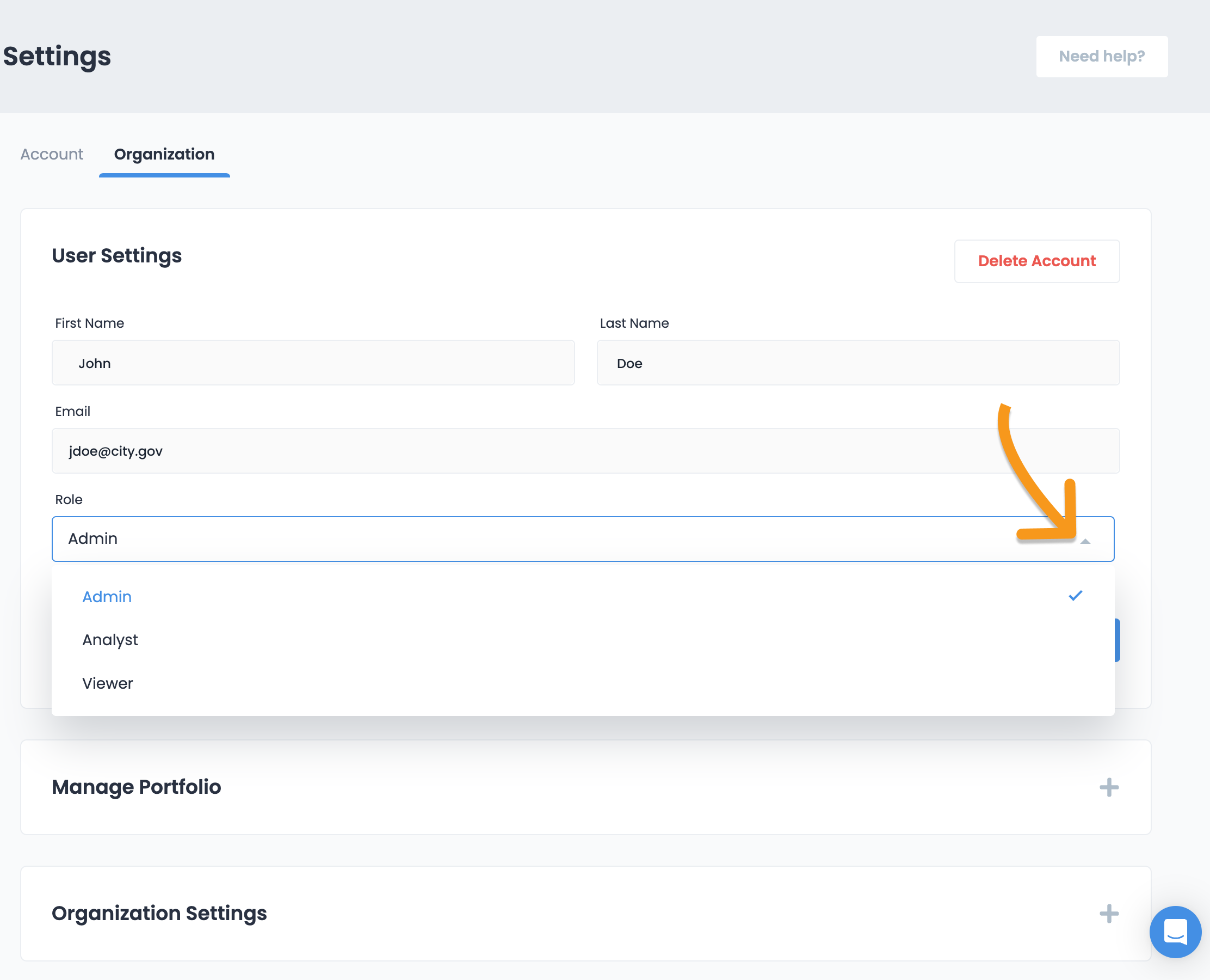 Analyst - has permissions to create reports, files, maps and can share files on the Portfolio. The role can not change Organizational Settings or invite new users.