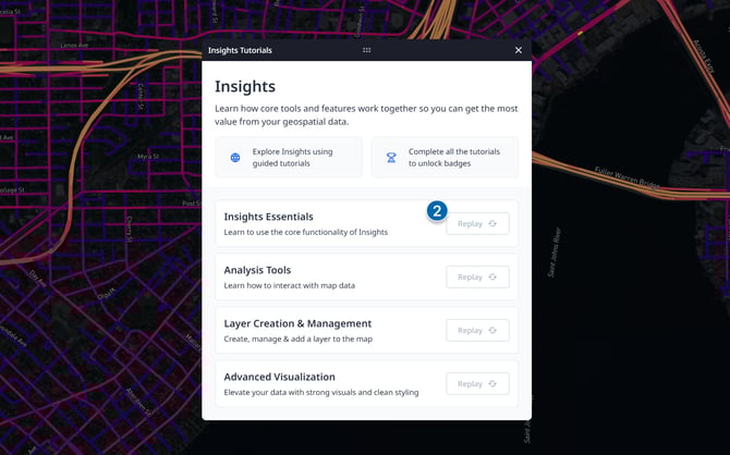 Insights has in-app tutorials that offer quick refreshers on platform functionality to help you get acquainted with all the capabilities the solution has to offer