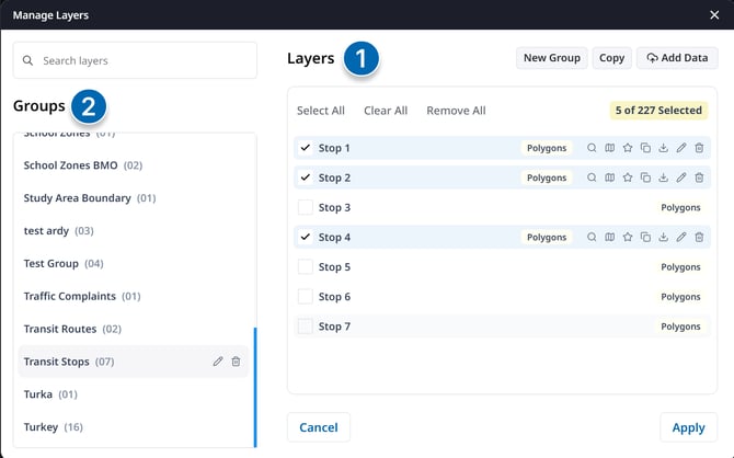 Insights has as powerful layer management system that enables you to create layer groups to organize data for easy access across your projects, teams, and organization.