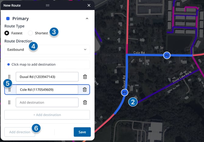 Route Selection lets you draw detailed paths across the map, ideal for analyzing corridor-level travel and connectivity.