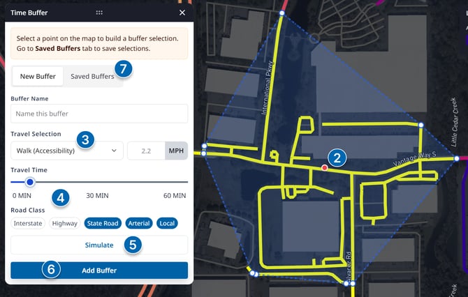 Time Buffer lets you define travel-time boundaries from any point on the map, making it easy to analyze accessibility and coverage areas with precision.