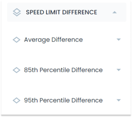The following are Speed Limit Difference data layers that can be selected within Insights including: